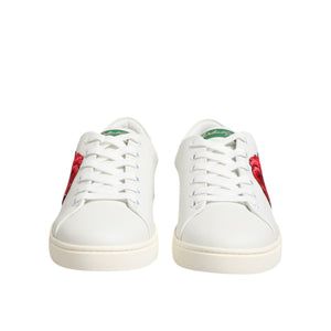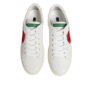 Dolce & Gabbana White Leather Rose Embroidery Low-Top Shoes