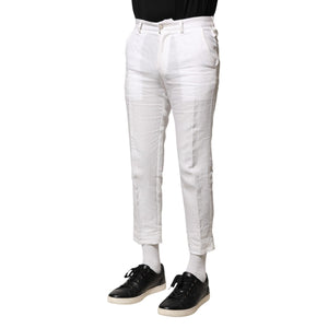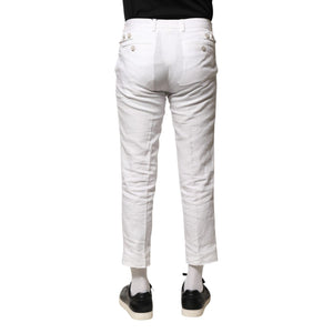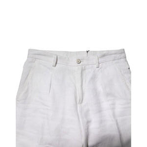Dolce & Gabbana White Linen Mid Waist Cropped Pants