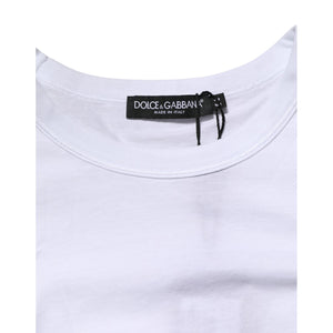 Dolce & Gabbana White Logo Plaque Cotton Crew Neck T-shirt