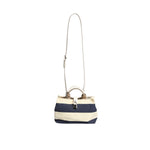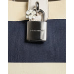 Dolce & Gabbana White Navy Striped Canvas Top Handle Tote Bag