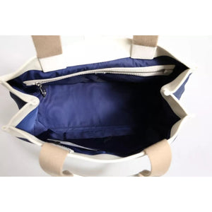 Dolce & Gabbana White Navy Striped Canvas Top Handle Tote Tote Bag