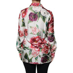Dolce & Gabbana White Peony Silk Long Sleeves Collared Blouse Top