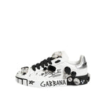Gorgeous brand new, 100% Authentic Dolce & Gabbana sneakers feature a white leather upper, a rubber sole, lace-up closure, and are adorned with various rhinestone and crystal applications, along with graffiti-inspired print details.