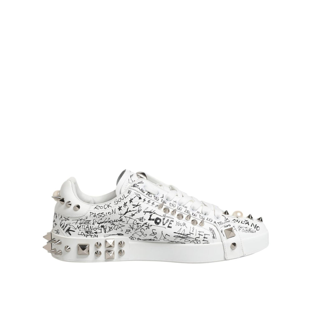 Dolce & Gabbana White Portofino Studded Men Sneakers Shoes