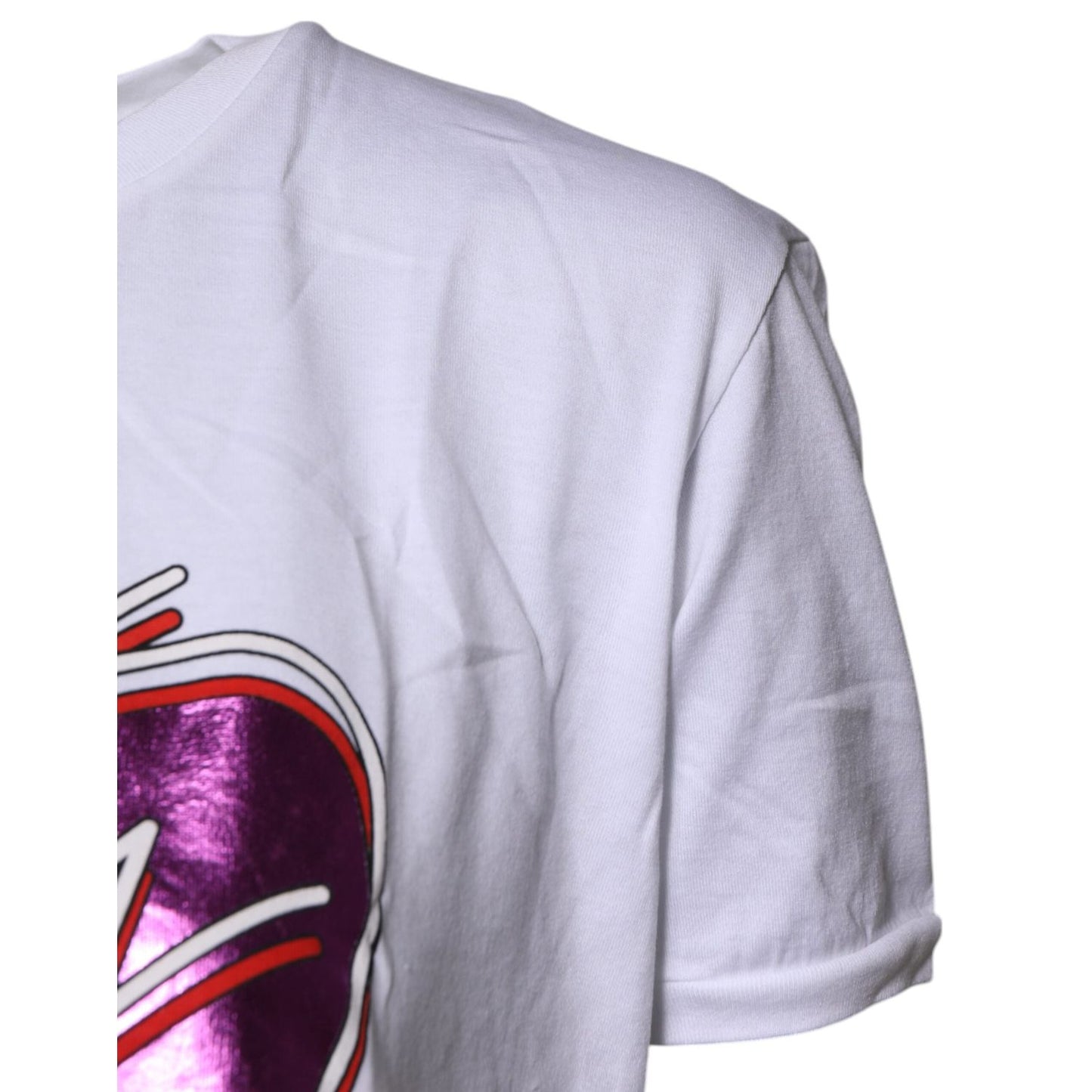Dolce & Gabbana White Printed Cotton Round Neck Top T-shirt