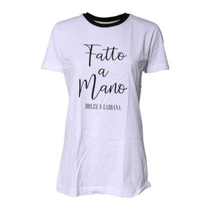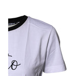 Dolce & Gabbana White Printed Round Neck Top Cotton T-shirt