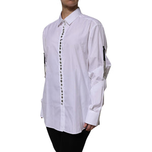 Dolce & Gabbana White Rhinestone Embellish Long Sleeves Top