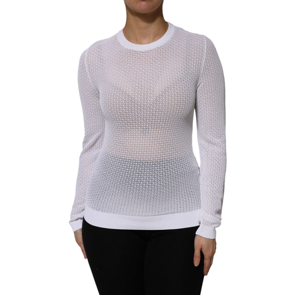 Dolce & Gabbana White Round Neck Long Sleeves Pullover Top