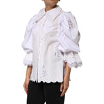 Dolce & Gabbana White Ruffled Lace Embellished Blouse Top