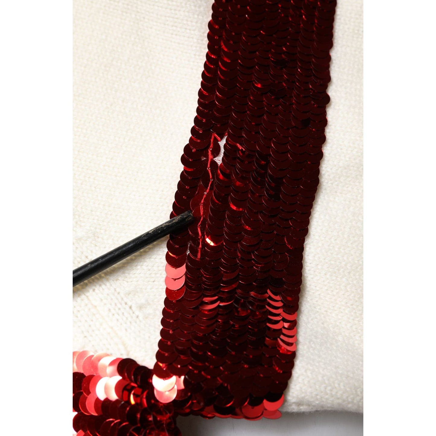 Dolce & Gabbana White Sequined Crew Neck Pullover Sweater