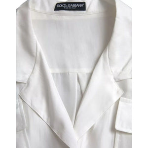 Dolce & Gabbana White Silk Collared 3/4 Sleeves Blouse Top