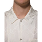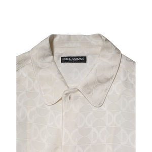 Dolce & Gabbana White Silk DG Logo Print Long Sleeves Shirt