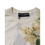Dolce & Gabbana White Silk Lily Embellished Pullover Sweater