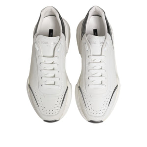 Dolce & Gabbana White Silver DAYMASTER Leather Sneakers Shoes