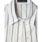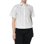 Dolce & Gabbana White Striped Collared Short Sleeve Polo Top