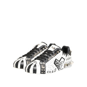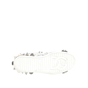 Dolce & Gabbana White Studded Printed Low Top Sneakers Shoes