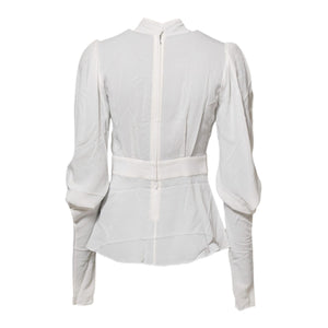 Dolce & Gabbana White Viscose Ascot Collar Long Sleeves Top