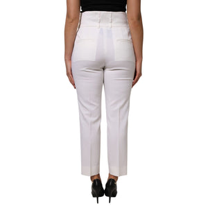 Dolce & Gabbana White Wool High Waist Tapered Pants