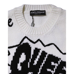 Dolce & Gabbana White Wool Knit Crew Neck Pullover Sweater