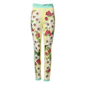 Dolce & Gabbana Yellow Silk Floral Leggings Pants