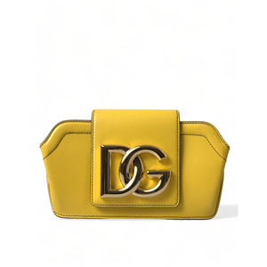 Dolce & Gabbana Yellow Smooth Leather DG Logo Clutch Crossbody Case Bag