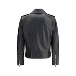 Dsquared2’s Kiodo leather Jacket features a lapel collar and a double-breasted, double-slider zipper closure. The functional design includes two zippered pockets, a heart point pocket also zippered, and zippered sleeve bottoms. Distinctive details such as snap-buttoned frogs on the shoulders and buckle straps sewn to the hips complete this garment with a strong contemporary character.