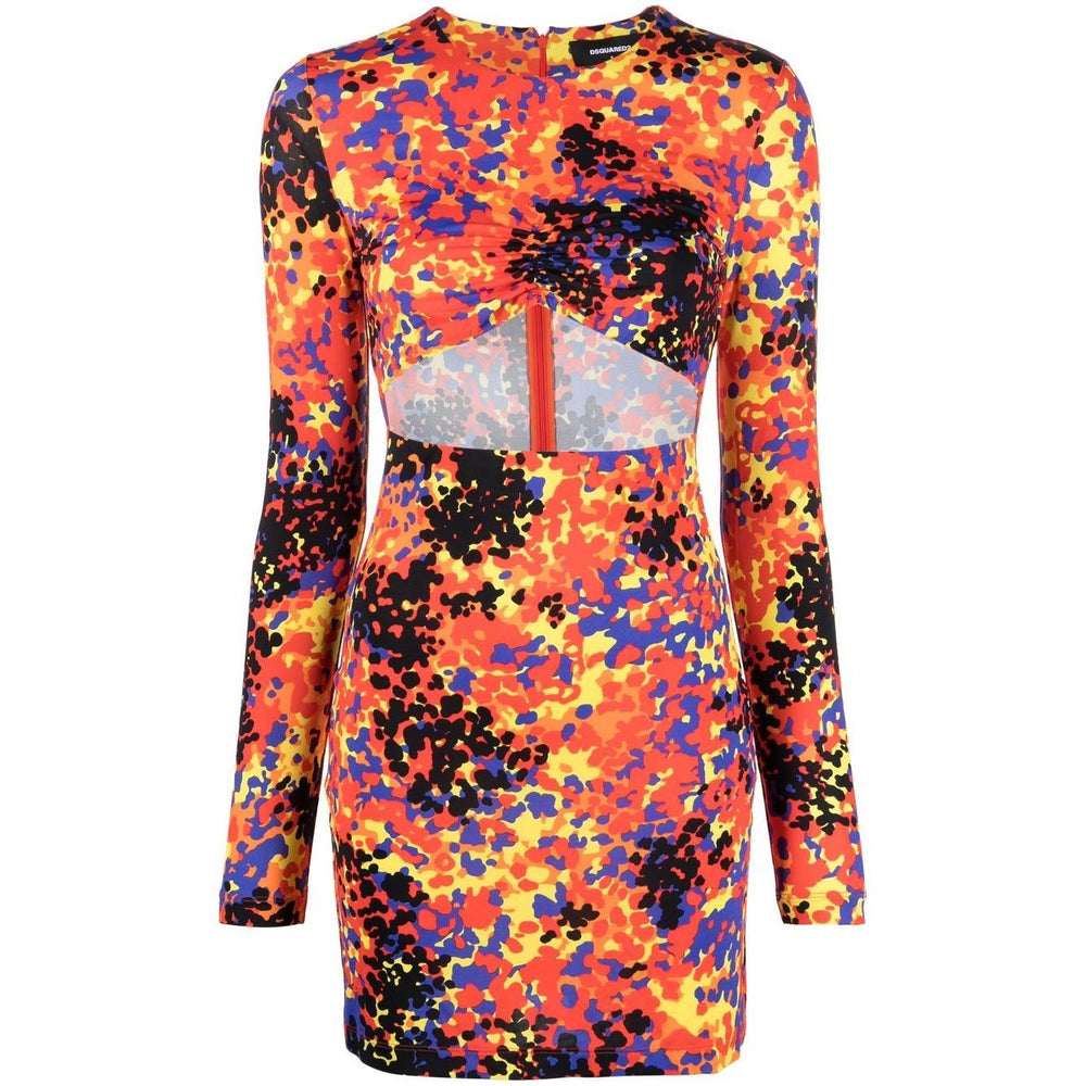 cut-out, mini Printed cut-out short dress Size and Fit - This piece fits true to size. We recommend you get your regular size. Model is 1,75m / 5ft 8in wearing size S