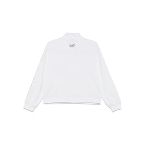 white front zip fastening two front flap pockets ribbed cuffs and hem long sleeves Logo zipped sweatshirt Size and Fit - This piece fits true to size. We recommend you get your regular size. Model is 1,75m / 5ft 8in wearing size S