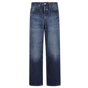 Jeans denim blu, gamba larga, chiusura con zip e bottone, cinque tasche. Wide-leg denim jeans Size and Fit - This piece fits true to size. We recommend you get your regular size. Model is 1,84m / 6ft 1in wearing size 32 (WAIST CM)