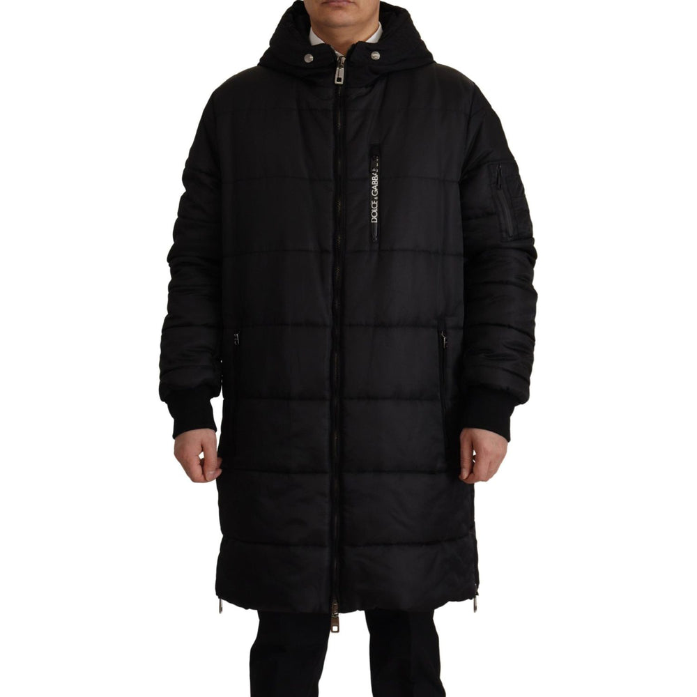 Dolce & Gabbana Black Nylon Hooded Parka Coat Winter Jacket