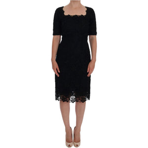Dolce & Gabbana Black Floral Ricamo Sheath Dress
