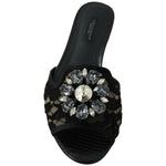 Dolce & Gabbana Black Taormina Lace Slides Crystals Flats Shoes