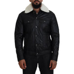 Dolce & Gabbana Black Lamb Leather Collared Men Coat Jacket