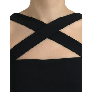 优雅黑色直筒吊带中长连衣裙
