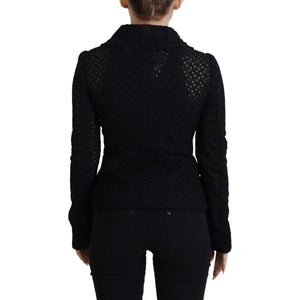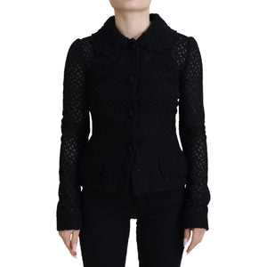 Dolce & Gabbana Black Wool Knitted Button Down Collar Jacket