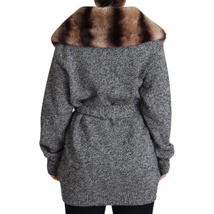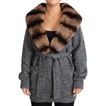 Dolce & Gabbana Gray Cardigan Fur Coat Cashmere Jacket