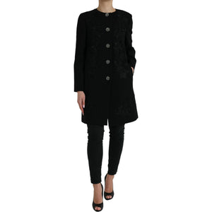 Dolce & Gabbana Black Floral Wool Button Embellished Jacket