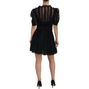 Dolce & Gabbana Black Lace Trim A-line Mini Nylon Dress