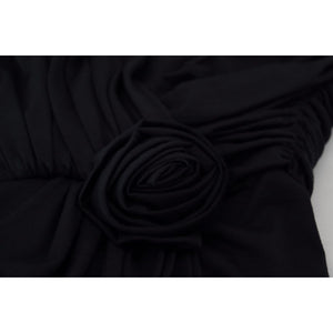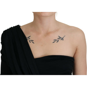 Dolce & Gabbana Black Wrap Sheath One Shoulder Wool Dress