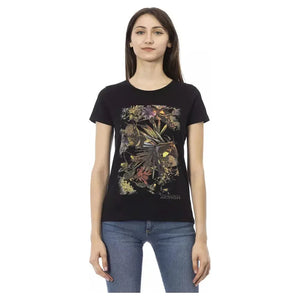 Trussardi Action 短袖 T 恤采用精美正面印花和经典圆领设计,是休闲时尚的典范。这款百搭黑色上衣是任何精致衣柜的必备单品,既舒适又时尚。