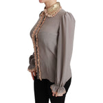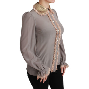 Dolce & Gabbana Gray Silk Gold Sequin Lace Blouse Shirt