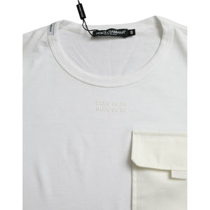 这款纯正的Dolce & Gabbana白色棉质 T 恤彰显了意大利的精致。它采用时尚的圆领和胸前口袋设计,体现了休闲的奢华,与品牌对品质和风格的承诺相呼应。炫耀这款时尚的作品,它可完美融入您的精致衣橱。