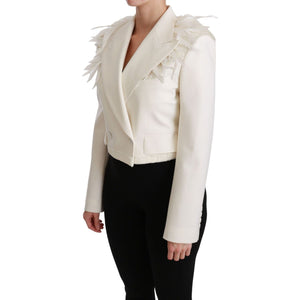 Dolce & Gabbana White Double Breasted Coat Wool Jacket