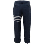 Indulge in the epitome of sophistication with these blue Thom Browne acrylic pants, expertly crafted in Italy to elevate your wardrobe with a touch of elegance. Perfect for fashion-forward individuals who demand both style and quality.