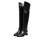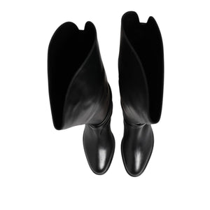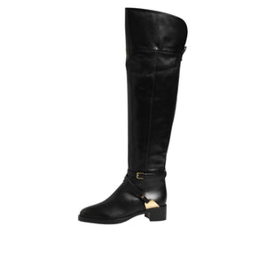 Elisabetta Franchi Black Leather Buckled High Boots Shoes