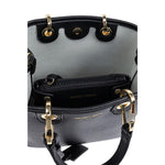 black logo print to the front logo shoulder strap logo tag two rolled top handles magnetic fastening main compartment removable pouch MyEa shopping bag Size and Fit - Width 8,66 in / 22 cm