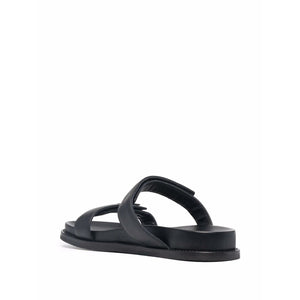 Black leather double-strap leather sandals from EMPORIO ARMANI featuring double-strap design, open toe, flat rubber sole and slip-on style. Leather flat sandals Size and Fit - Heel 1,2 in / 3 cm; Platform 0,8 in / 2 cm