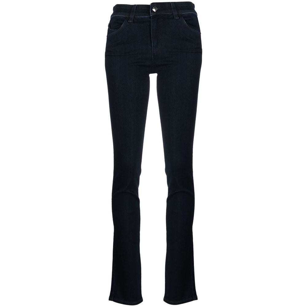 High-waisted slim-cut trousers from EMPORIO ARMANI featuring front button and zip fastening, classic five pockets, indigo blue, stretch-cotton, slim cut and belt loops. Denim cotton jeans Size and Fit - This piece fits true to size. We recommend you get your regular size. Model is 1,75m / 5ft 8in wearing size 27 (WAIST CM)