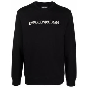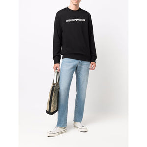 black/white modal-cotton blend jersey fleece logo print to the front crew neck long sleeves straight hem Cotton blend crewneck sweatshirt