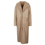 Beige coat, with pressure closure, two hidden pockets, V -neck, long. Allegra leather long coat Size and Fit - This piece fits true to size. We recommend you get your regular size. Model is 1,75m / 5ft 8in wearing size 36 (FR)